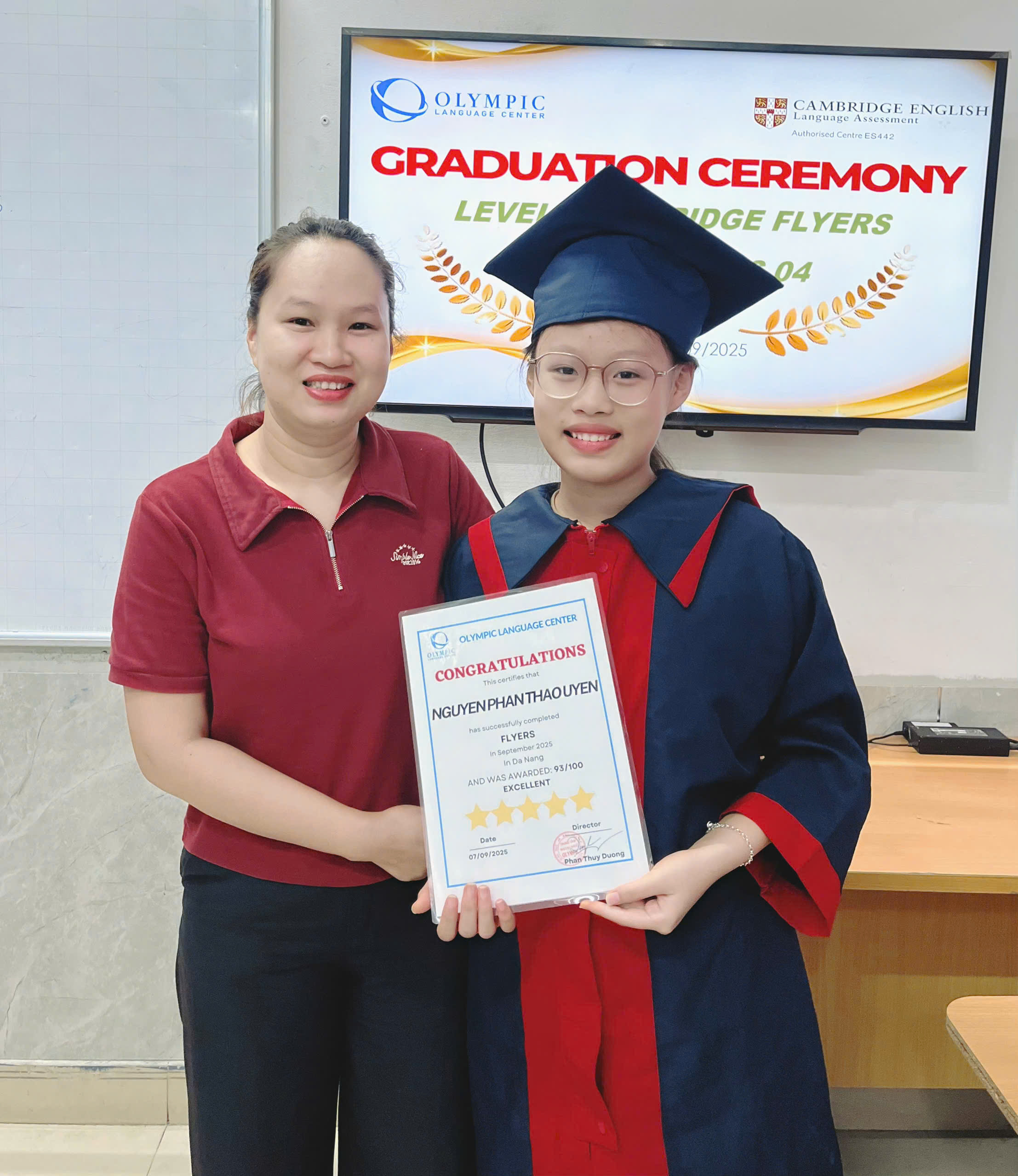 Thành công hôm nay là kết quả của sự nỗ lực không ngừng, sự đồng hành của thầy cô và sự ủng hộ từ gia đình. Chúc các bạn tiếp tục giữ vững tinh thần ham học hỏi, phát huy thật tốt kiến thức đã được trang bị để chinh phục những cấp độ cao hơn trong tương lai.